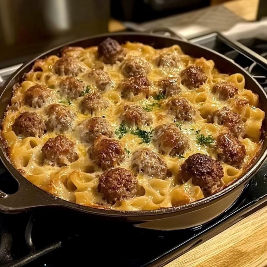 🍲 Creamy Swedish Meatball Noodle Bake